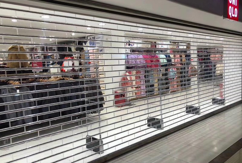 大型商场内的各专卖店铺位门面所选用水晶卷帘门,水晶卷帘门特点能相应提高商场品位,在早晚各店铺陆续开业和收铺的一段时间里能够继续提供明亮 整体的陈列效果,产品占用空间小,营业面宽 顾客进出方便自如,给商场物业提供良好环境。